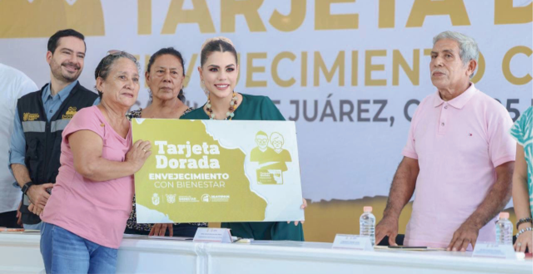 Acapulco, Guerrero, Noviembre 6.- Como un acto de gratitud y justicia social, la gobernadora Evelyn Salgado Pineda entregó apoyos del programa Tarjeta Dorada, en beneficio de adultos mayores, con lo que se busca reconocer su trayectoria y garantizar una vida plena, con bienestar y dignidad. A través de este programa, podrán acceder a diversos descuentos, así como facilidades en diversos trámites; para Acapulco, se tiene como meta apoyar a poco más de 10 mil personas.