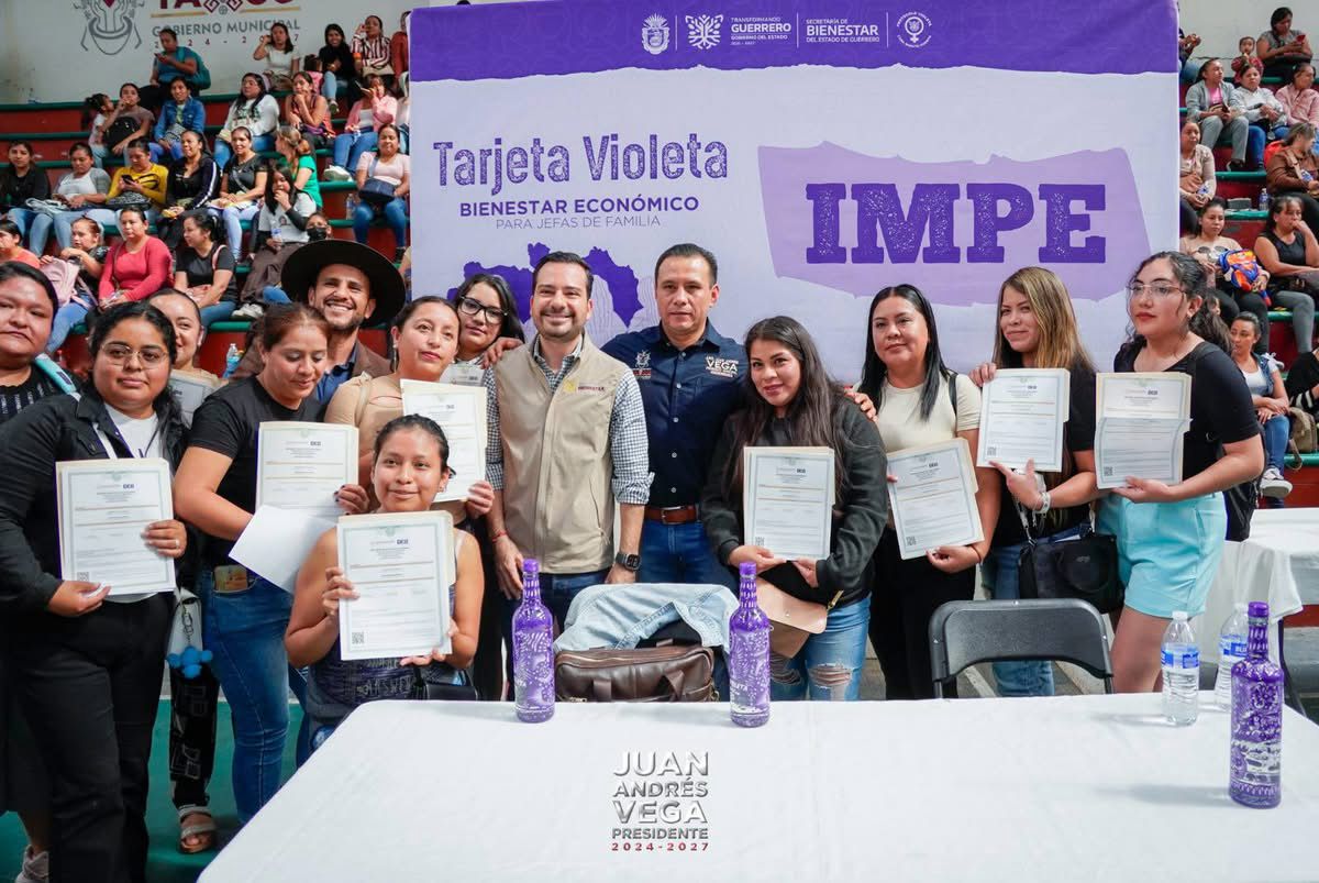 Taxco, Gro., Diciembre 16.- El presidente municipal, Arq. Juan Andrés Vega Carranza, asistió a la entrega de 1,765 constancias de la Tarjeta Violeta, una acción que representa respaldo real, acompañamiento y justicia social para miles de mujeres taxqueñas.
