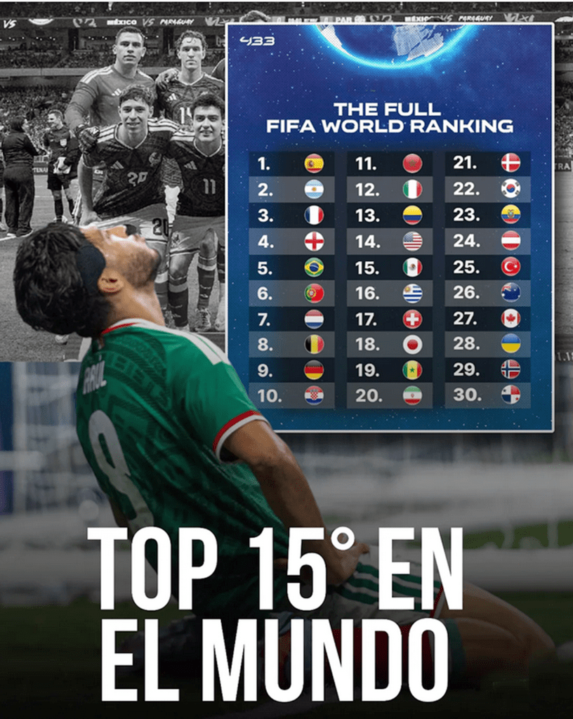 Ciudad de México, La última clasificación mundial de la FIFA de 2025 trajo que la selección de Estados Unidos superara a México, donde España sigue como la número 1, Vietnam tuvo el mayor ascenso y Malasia el mayor descenso, con cinco puestos.