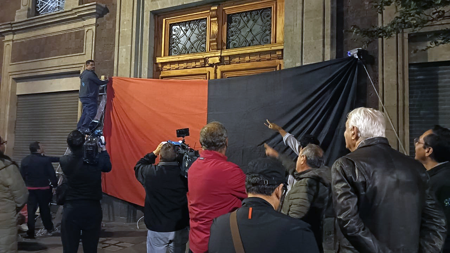 Al colocar las banderas rojinegras Arturo Zayún, secretario general del Sindicato del Monte de Piedad, dijo que “Hemos enfrentado un conflicto durante los últimos cinco años, originado por los intentos de liquidar el contrato colectivo de trabajo y despedir a los empleados”.
