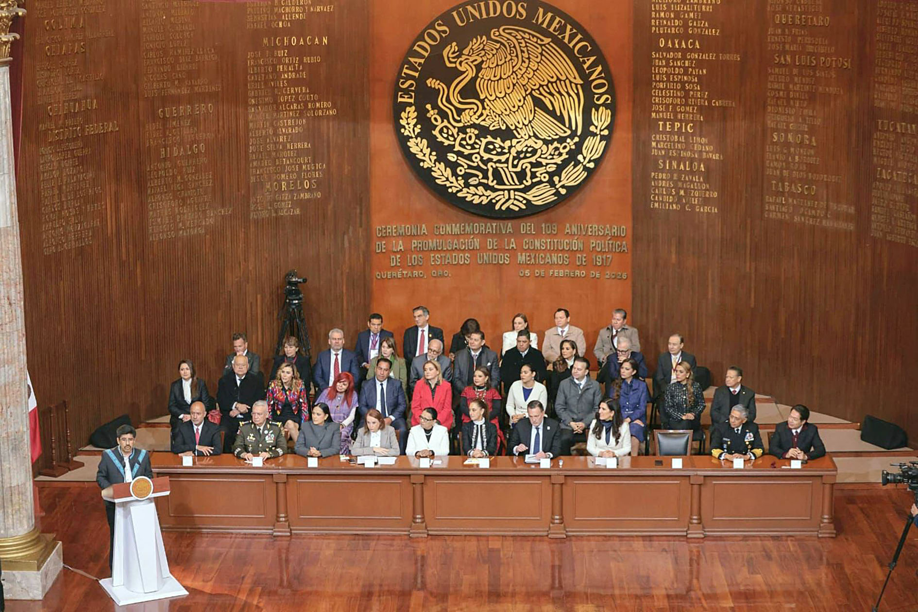 Querétaro, Qro., La gobernadora de Guerrero, Evelyn Salgado Pineda, asistió al acto solemne por la conmemoración del 109º Aniversario de la Promulgación de la Constitución Política de 1917, encabezado por la presidenta Claudia Sheinbaum Pardo, en el Teatro de la República, recinto histórico del constitucionalismo mexicano.