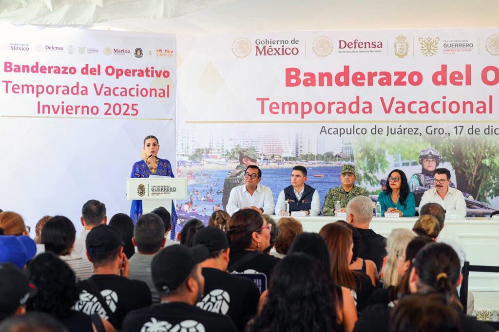 ACapulco, Gro., Para salvaguardar la integridad de la población guerrerense y de quienes visitan el estado, mediante acciones de protección, prevención y acompañamiento, la gobernadora Evelyn Salgado Pineda dio el banderazo del Operativo Temporada Vacacional Invierno 2025, en el que participan de manera coordinada, 727 unidades y más de 6 mil 800 elementos de las distintas corporaciones, para brindar atención a turistas y residentes.