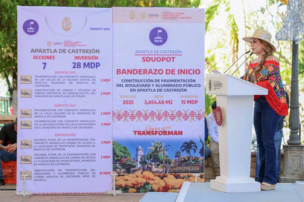 Apaxtla de Castrejón, Gro., Durante una gira de trabajo por la región Norte del estado, la gobernadora Evelyn Salgado Pineda anunció más de 35 millones de pesos de inversión en obras y acciones de infraestructura, servicios básicos, vivienda y conectividad para los municipios de Apaxtla de Castrejón y Cuetzala del Progreso, con el objetivo de impulsar el desarrollo regional y mejorar la calidad de vida de la población.
