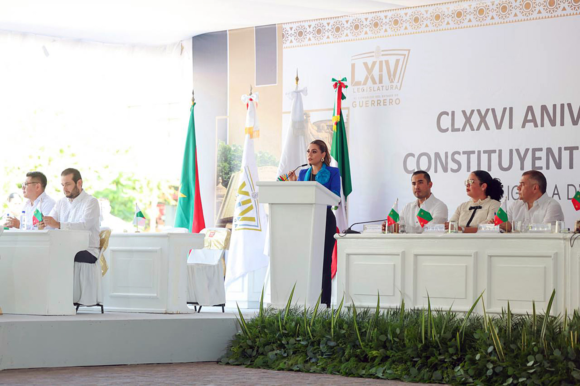 Desde Iguala, cuna de la Bandera Nacional, la mandataria estatal afirmó que sin la presencia de Guerrero no podría escribirse la historia de México, al tiempo que destacó que este aniversario marca el inicio de la vida constitucional del estado y demuestra la capacidad del pueblo guerrerense para organizarse, gobernarse y darse sus propias leyes.