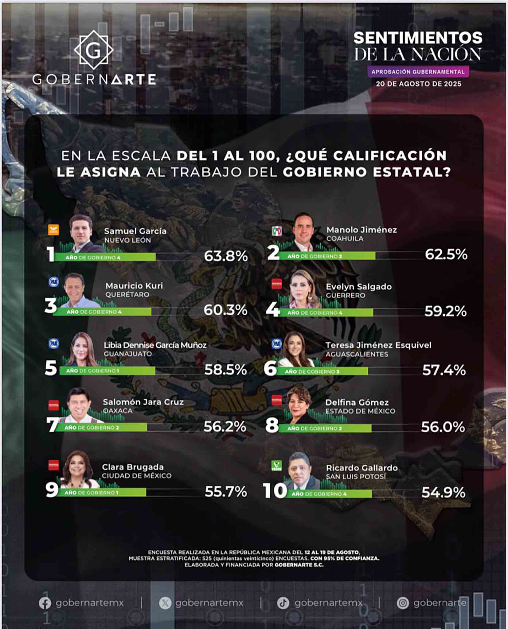 El estudio coloca a Guerrero con un 59.2% de aprobación ciudadana, cifra que posiciona a Salgado Pineda en el top nacional de mujeres gobernadoras y en el primer lugar entre las mandatarias del partido Morena.
