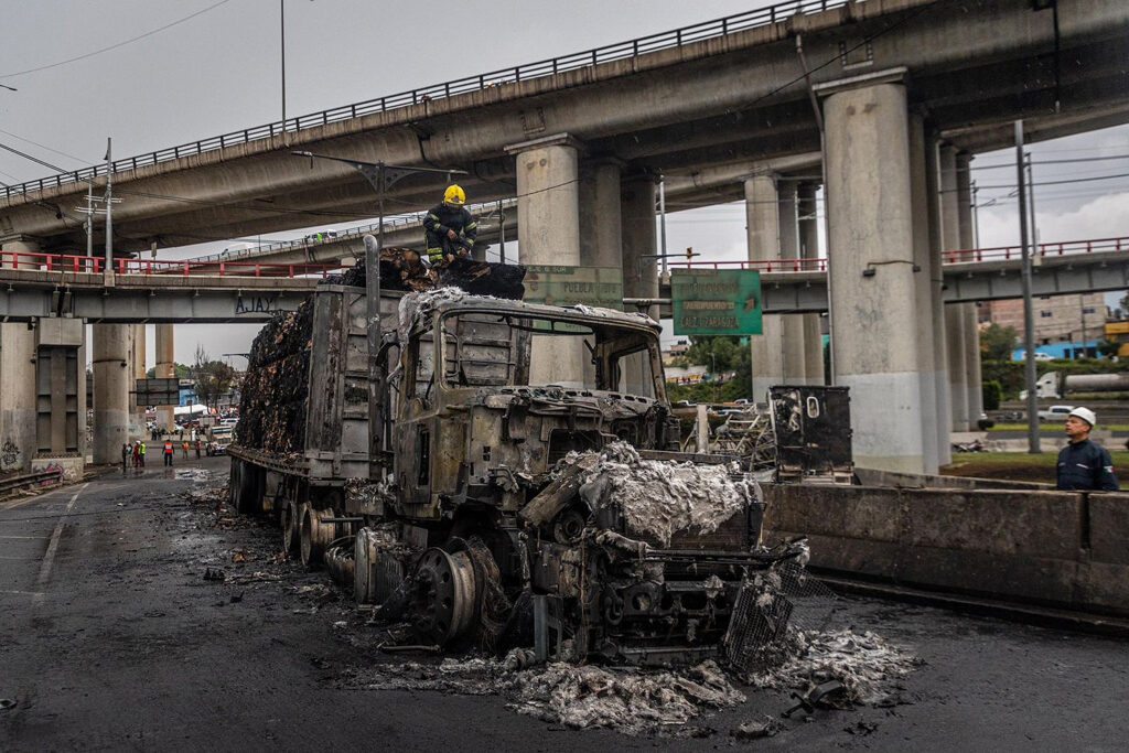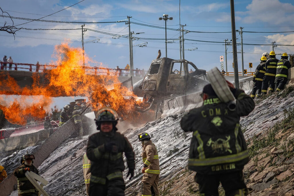Myriam Urzua indicó que la pipa cargaba 49,500 litros de gas y explicó que el incendio continúa porque servicios de emergencia buscan que el combustible se consuma con el fuego.