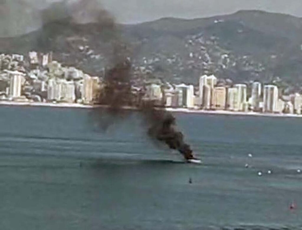 Acapulco, Gro., Una lancha quedó en pérdida total tras explotar e incendiarse la tarde de este miércoles en la bahía de Acapulco, frente al fraccionamiento Las Playas, en las inmediaciones de la residencia que perteneció al fallecido actor y comediante Mario Moreno “Cantinflas”.