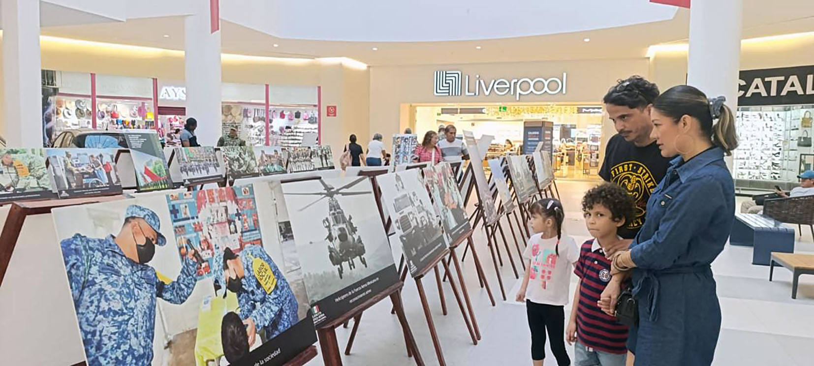 Acapulco, Gro., En plazas comerciales de Acapulco, se lleva a cabo la exposición fotográfica “Honor en cada Misión”, integrada por 62 imágenes representativas de las cinco misiones fundamentales del Ejército Mexicano, la Fuerza Aérea Mexicana y la Guardia Nacional.