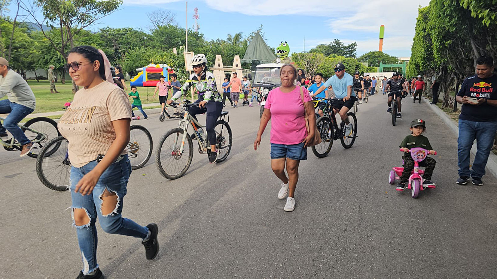 Iguala, Gro., Este sábado, familias igualtecas acudieron a las instalaciones del 27/o. Batallón de Infantería con sede en Iguala, donde se llevó a cabo una rodada ciclista.
