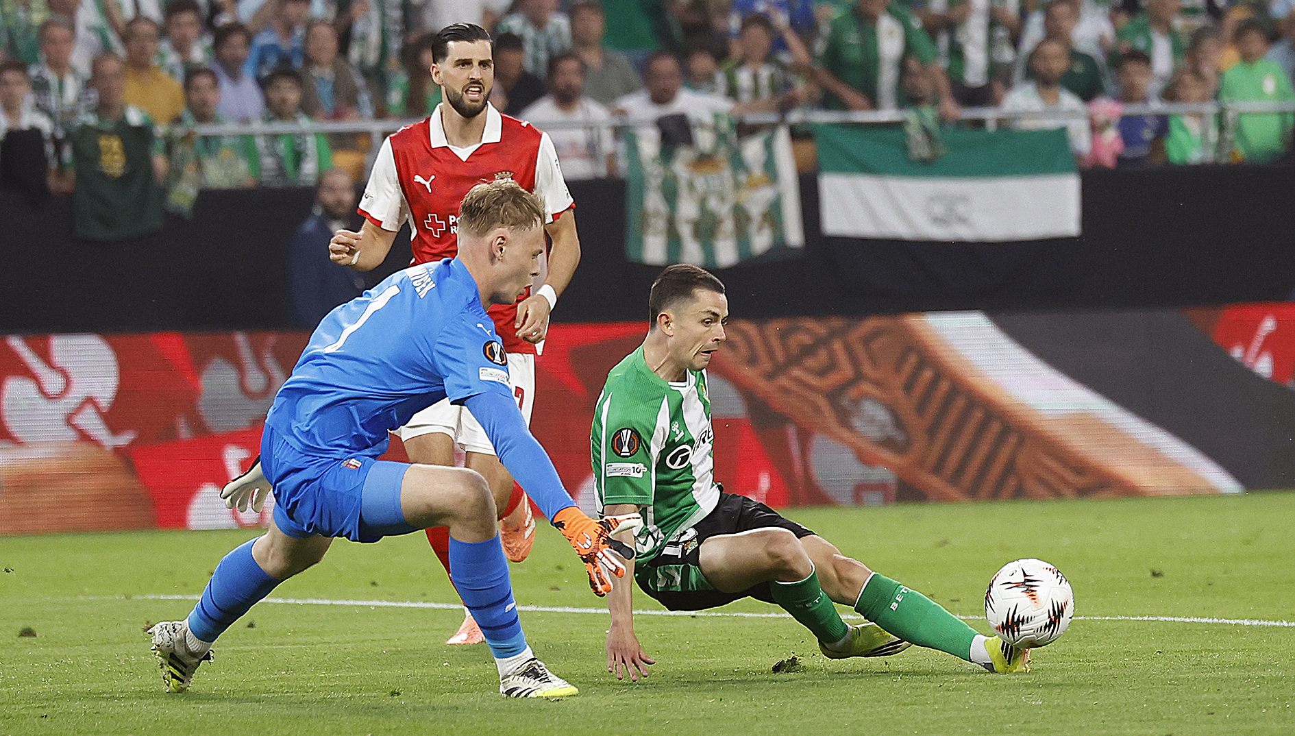 Sevilla, España, El conjunto de Betis quedó eliminado de la Europa League al perder 4-2 en el partido de vuelta contra el Sporting Braga de Portugal y con un 5-3 en el global quedaron fuera del torneo.