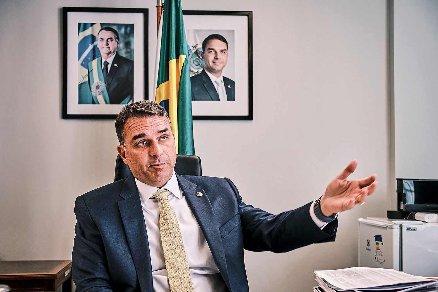 Flávio es un firme defensor de un proyecto de ley que propone amnistiar a los implicados en el golpe de Estado, incluyendo a su padre, un proyecto que lleva meses estancado en el Legislativo por falta de apoyo político.