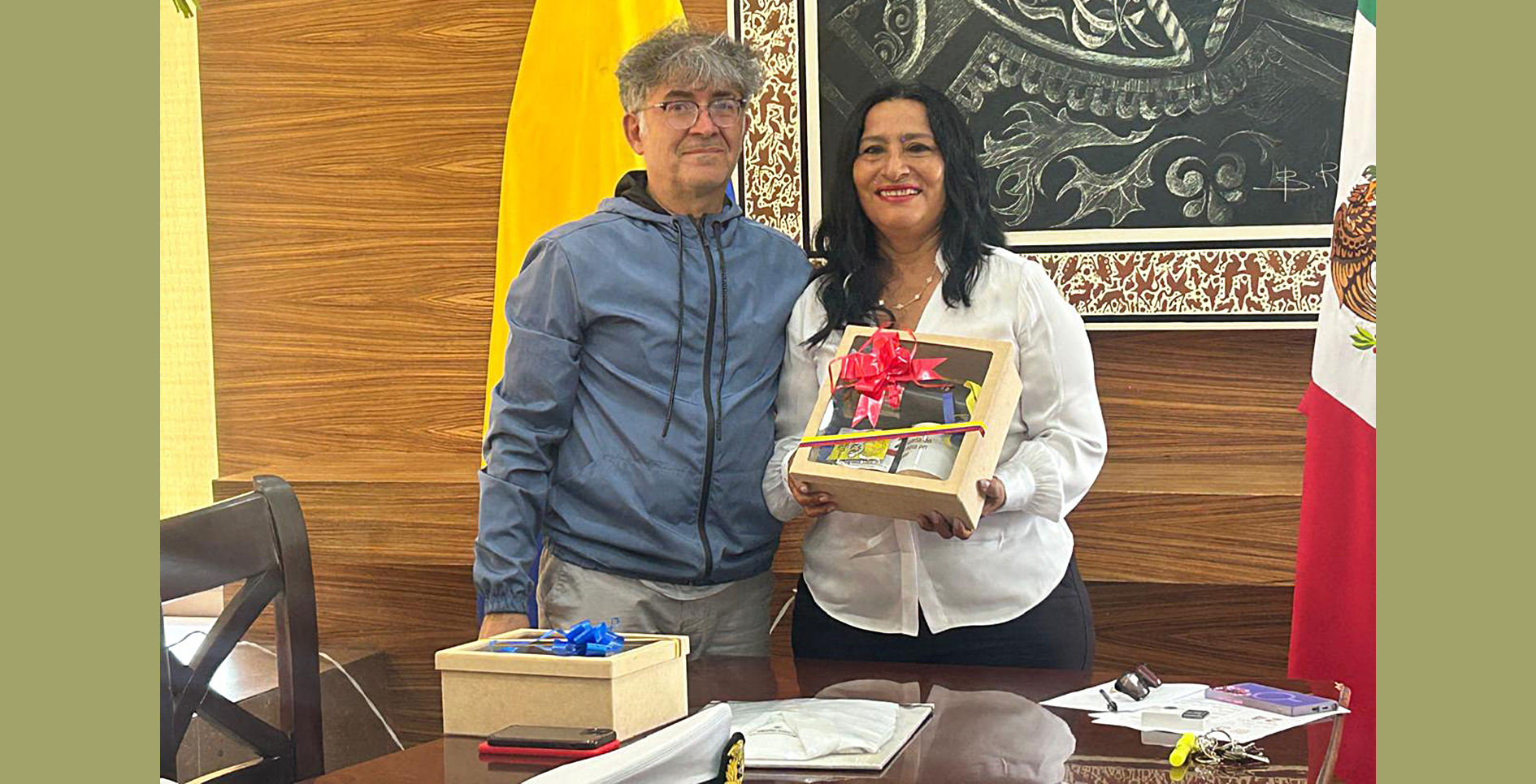 Al concluir, los invitados firmaron el libro de Visitas Distinguidas del Municipio y realizaron un intercambio de obsequios representativos de México y Colombia, como símbolo de amistad y cooperación cultural.