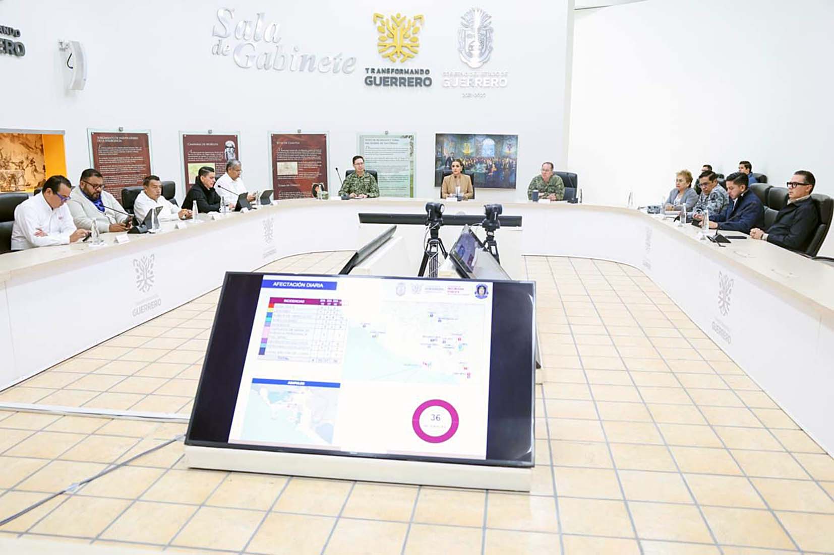 Desde la Mesa para la Construcción de la Paz, la gobernadora Evelyn Salgado Pineda, reiteró la presencia permanente de las instituciones de seguridad en Guerrero, bajo una coordinación estrecha con la Secretaría de Marina, Defensa Nacional, Guardia Nacional, Secretaría de Seguridad y Protección Ciudadana, así como la Secretaría de Seguridad Pública, trabajamos con el objetivo prioritario de garantizar la paz en los 85 municipios de Guerrero. / Foto: DGCS