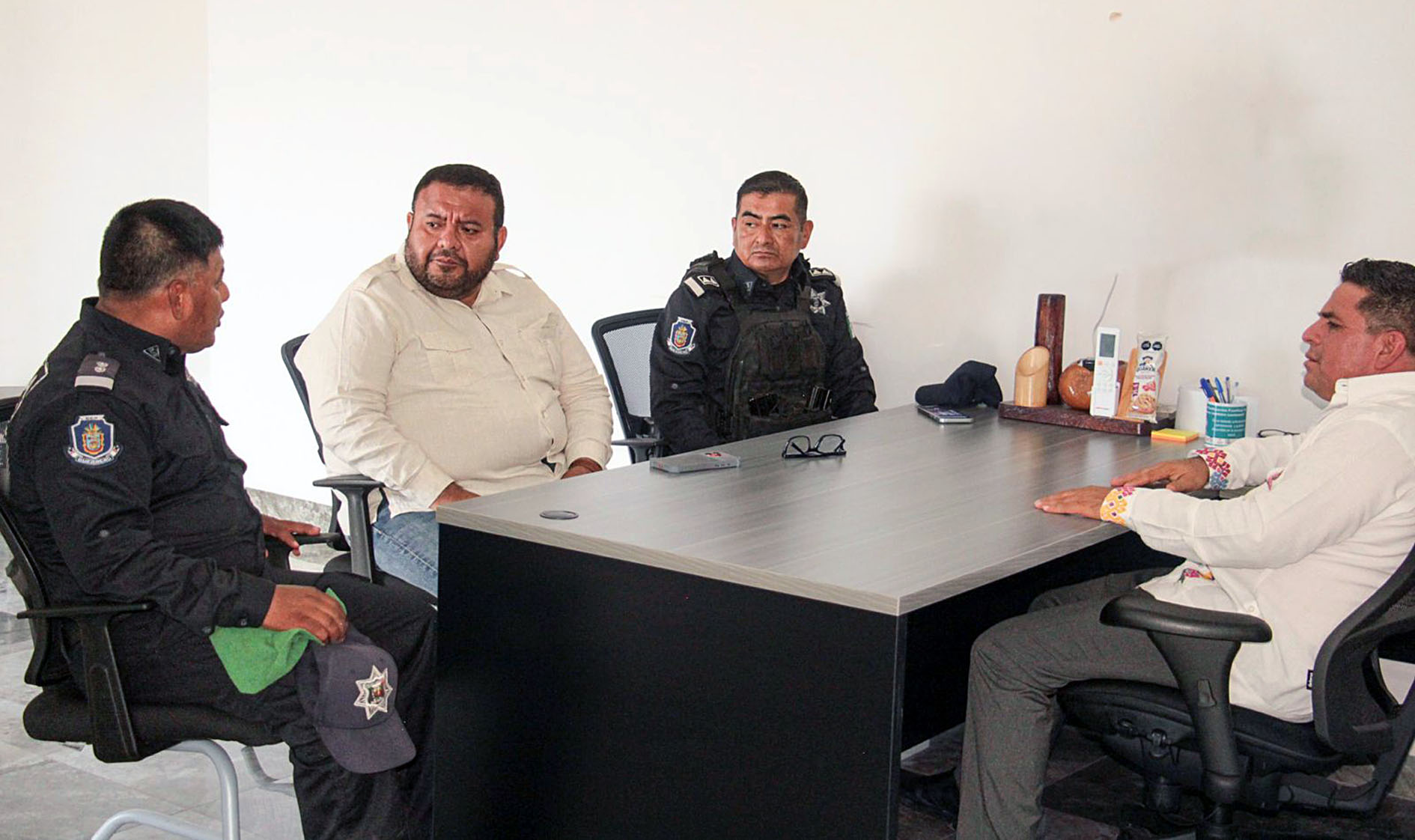 El subsecretario de Desarrollo Político y Social, Francisco Rodríguez Cisneros, acompañado del coordinador regional de la Secretaría de Seguridad Pública estatal, encabezó este encuentro con el presidente municipal, Rigoberto Chacón Melo, y el director de Seguridad Pública municipal, a fin de reforzar la coordinación interinstitucional y dar continuidad a las acciones en territorio.