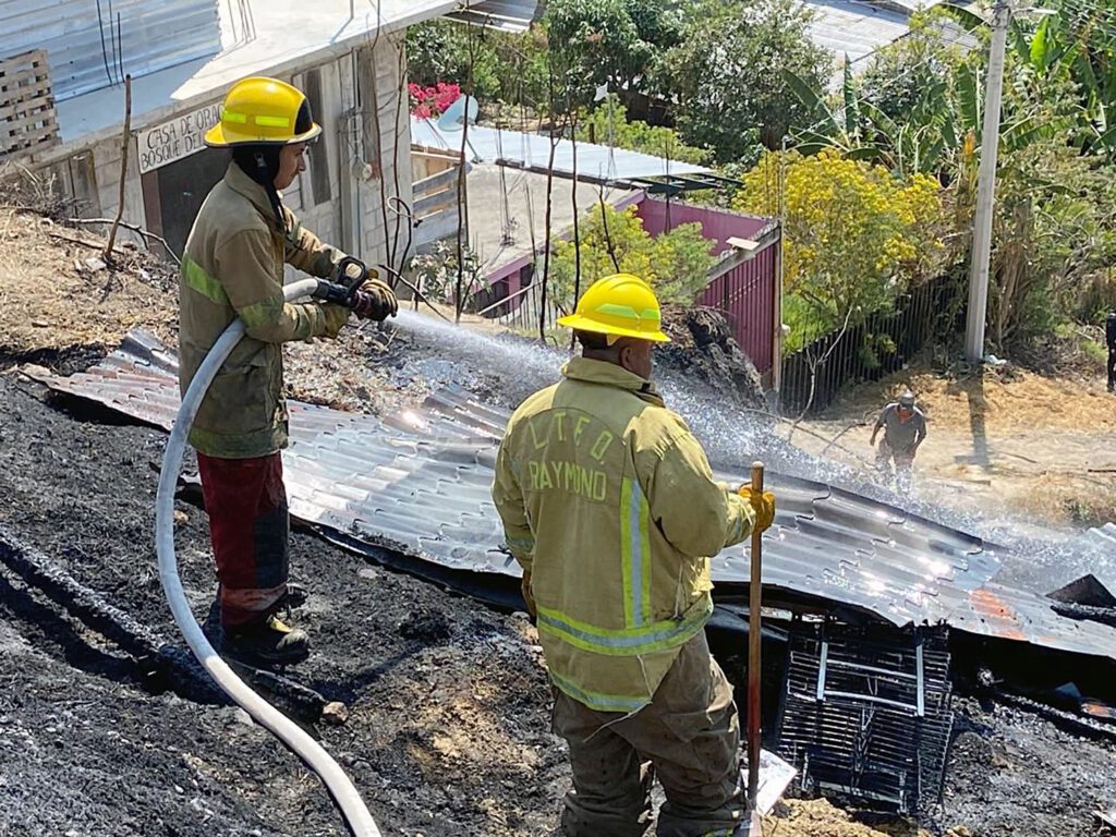 A su arribo, el personal observó que el fuego había consumido una vivienda construida con madera y lámina de cartón, la cual quedó con pérdida total.
