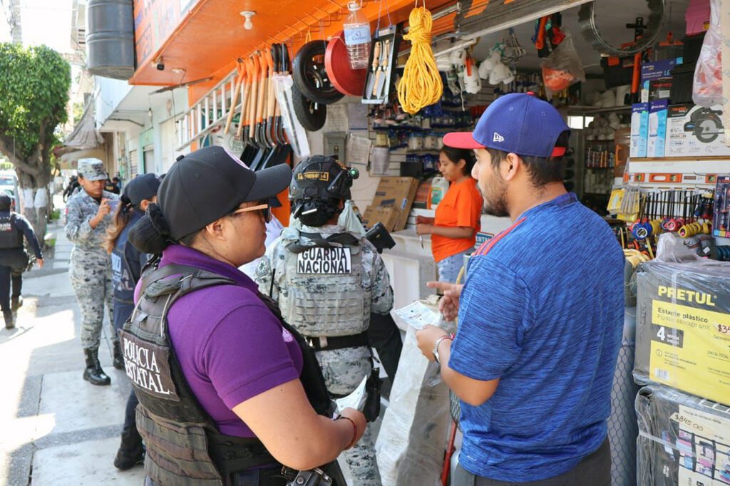 La Mesa de Coordinación informó que personal del Ejército Mexicano, Guardia Nacional, Fiscalía General del Estado, Policía Estatal y Tránsito Estatal, realizan recorridos pie-tierra para dialogar con comerciantes, familias y transeúntes, brindando información preventiva y atención directa a la población con lo cual se amplía la presencia interinstitucional en zonas de alta afluencia.
