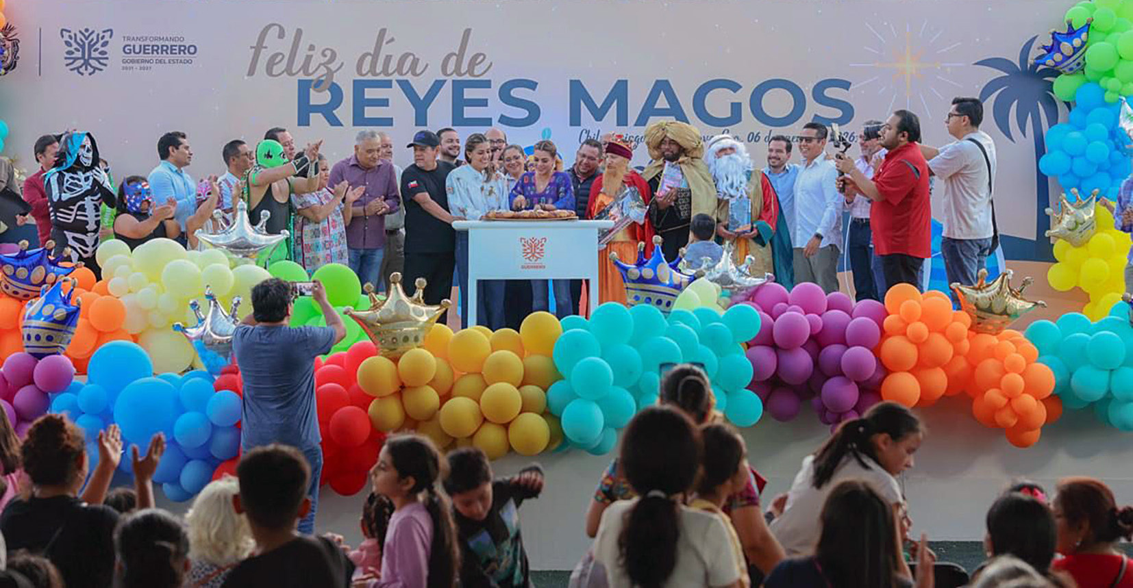 Chilpancingo, Gro., Niñas y niños de distintas colonias de Chilpancingo disfrutaron de una tarde llena de alegría y diversión junto con la gobernadora Evelyn Salgado Pineda y la presidenta del Sistema DIF Guerrero, Liz Salgado Pineda, para celebrar el Día de Reyes en las conocidas canchas de la Galeana.