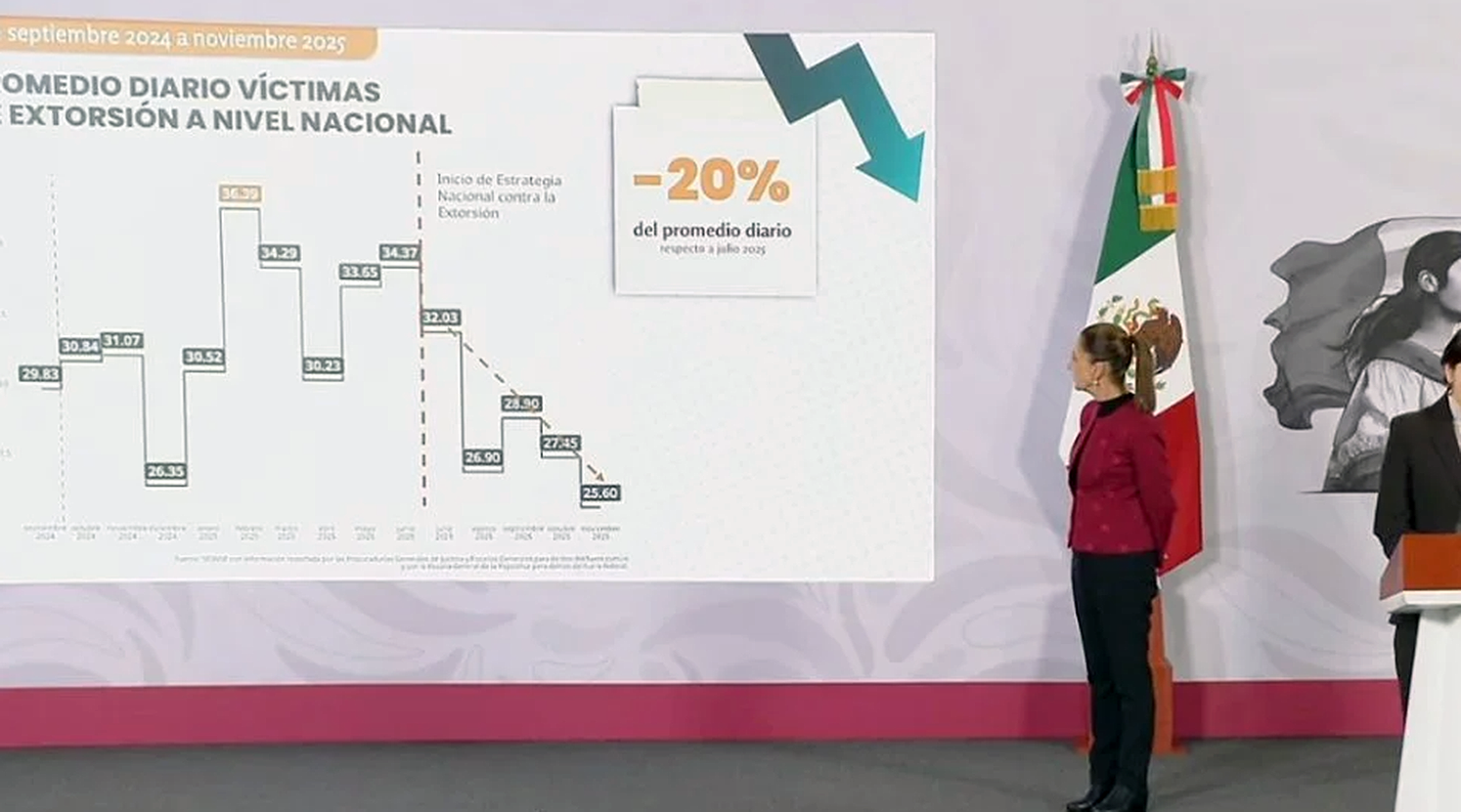 La extorsión creció un 23.1% en denuncias ante fiscalías. No obstante, Marcela Figueroa, secretaria Ejecutiva del Sistema Nacional de Seguridad Pública, afirmó que tras el inicio de la estrategia nacional contra este delito en julio, se registró «una reducción del 20 % en las denuncias» durante los últimos meses.