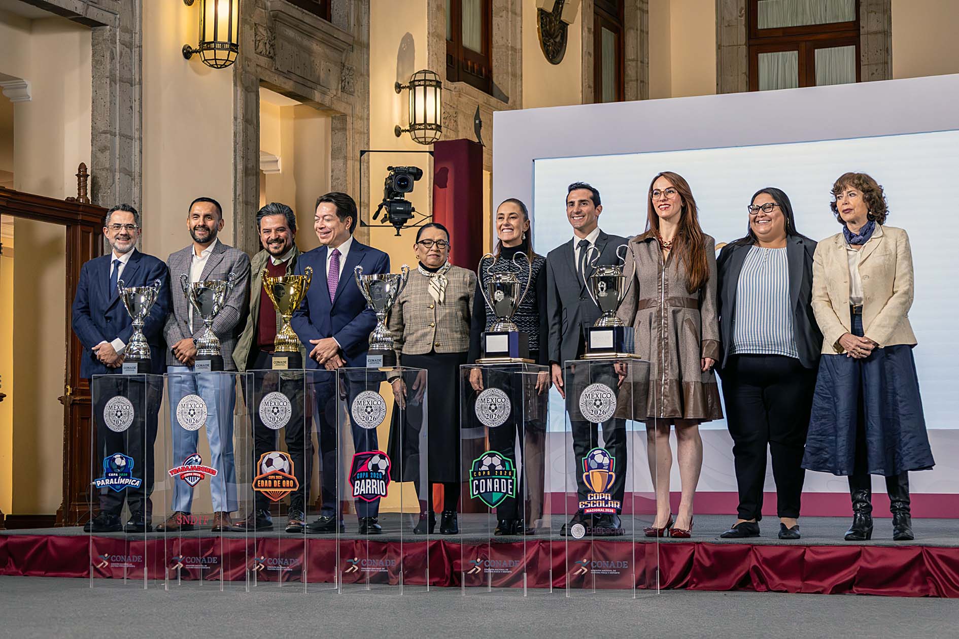 Esta presentación se realizó en la conferencia mañanera de la presidencia de la República donde participaron Rosa Icela Rodríguez, Secretaria de Gobernación; Mario Delgado, Secretario de Educación Pública; Rommel Pacheco, Director de la Conade y Gabriela Cuevas, representante de México para la Copa Mundial de la FIFA 2026.