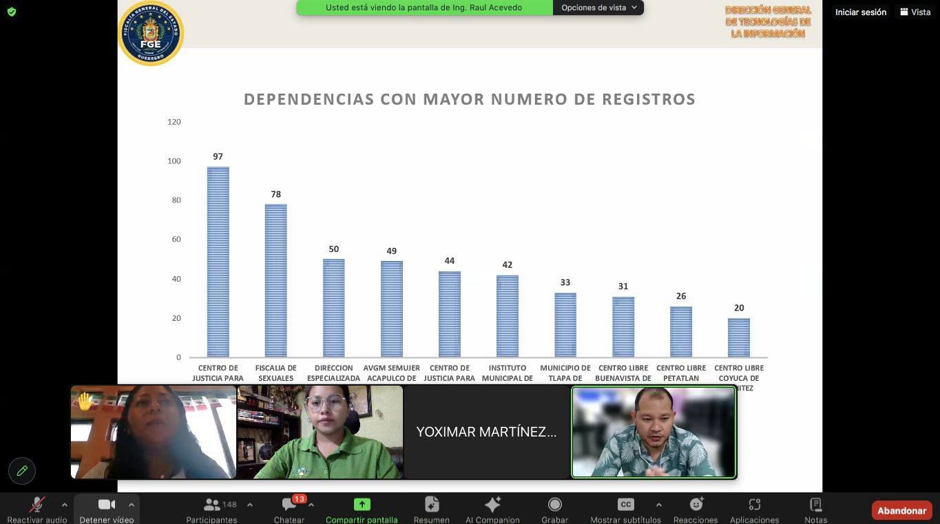 En representación del Ayuntamiento de Tlapa, asistieron a la reunión las y los servidores públicos que fungen como capturistas del BANAVIM-Guerrero, así como la Directora del Instituto Municipal de la Mujer, Denisse Arantza Ayala Flores, y personal operativo de la misma institución.
