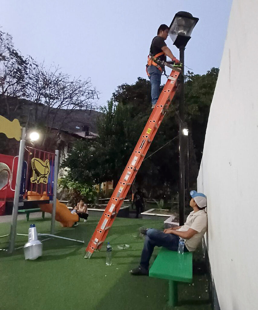 A través de la Secretaría de Servicios Públicos, que encabeza el C. Fausto Sánchez Guzmán se intervinieron las luminarias del parque para optimizar su funcionamiento, mejorar la visibilidad y reforzar las condiciones de seguridad para niñas, niños y familias que acuden a este lugar, especialmente durante las horas nocturnas.