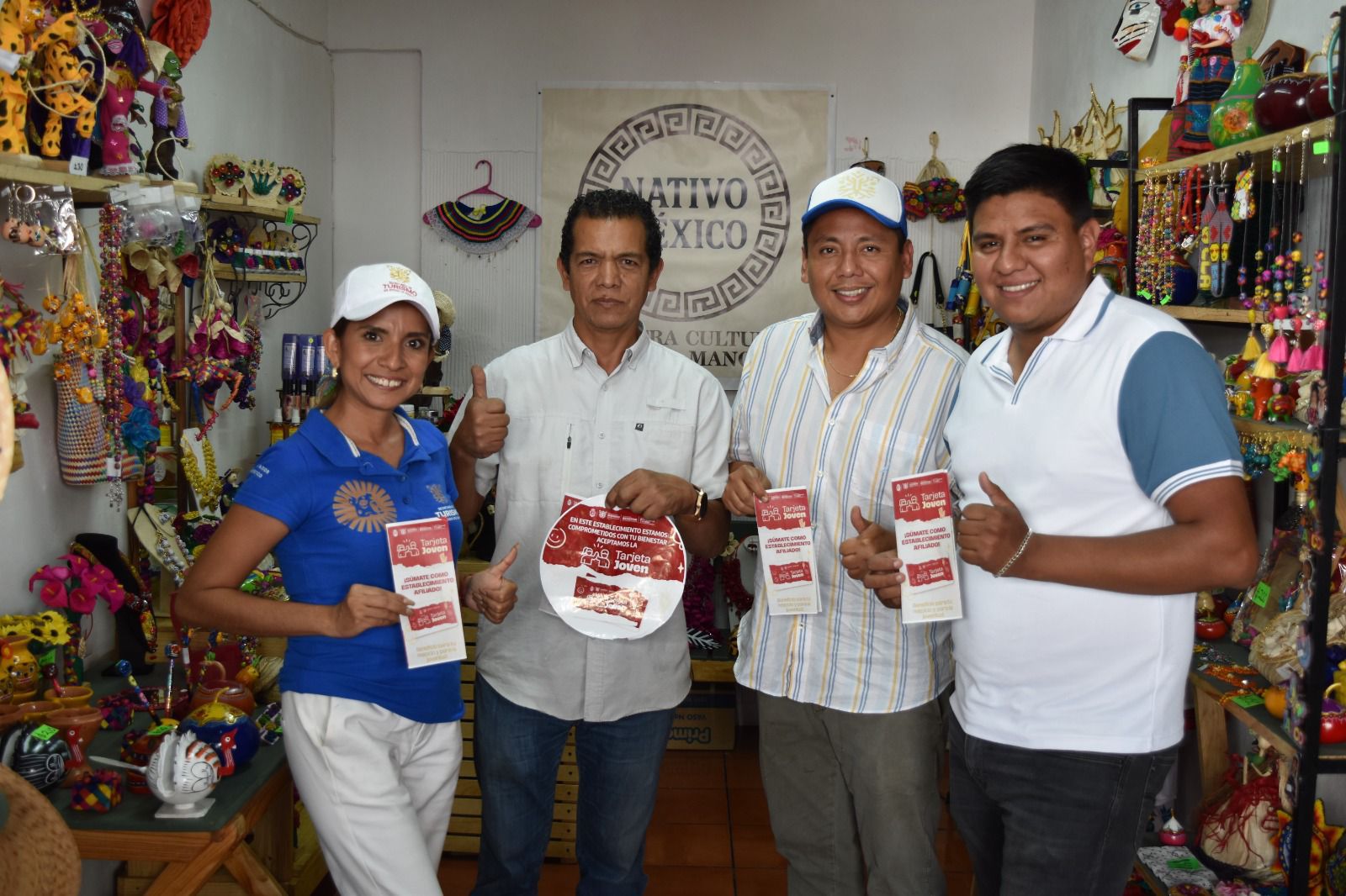 Durante estas acciones también se colocaron las calcomanías oficiales del programa, lo que permitirá a las personas beneficiarias identificar fácilmente los negocios participantes y acceder de forma clara y segura a los apoyos disponibles.