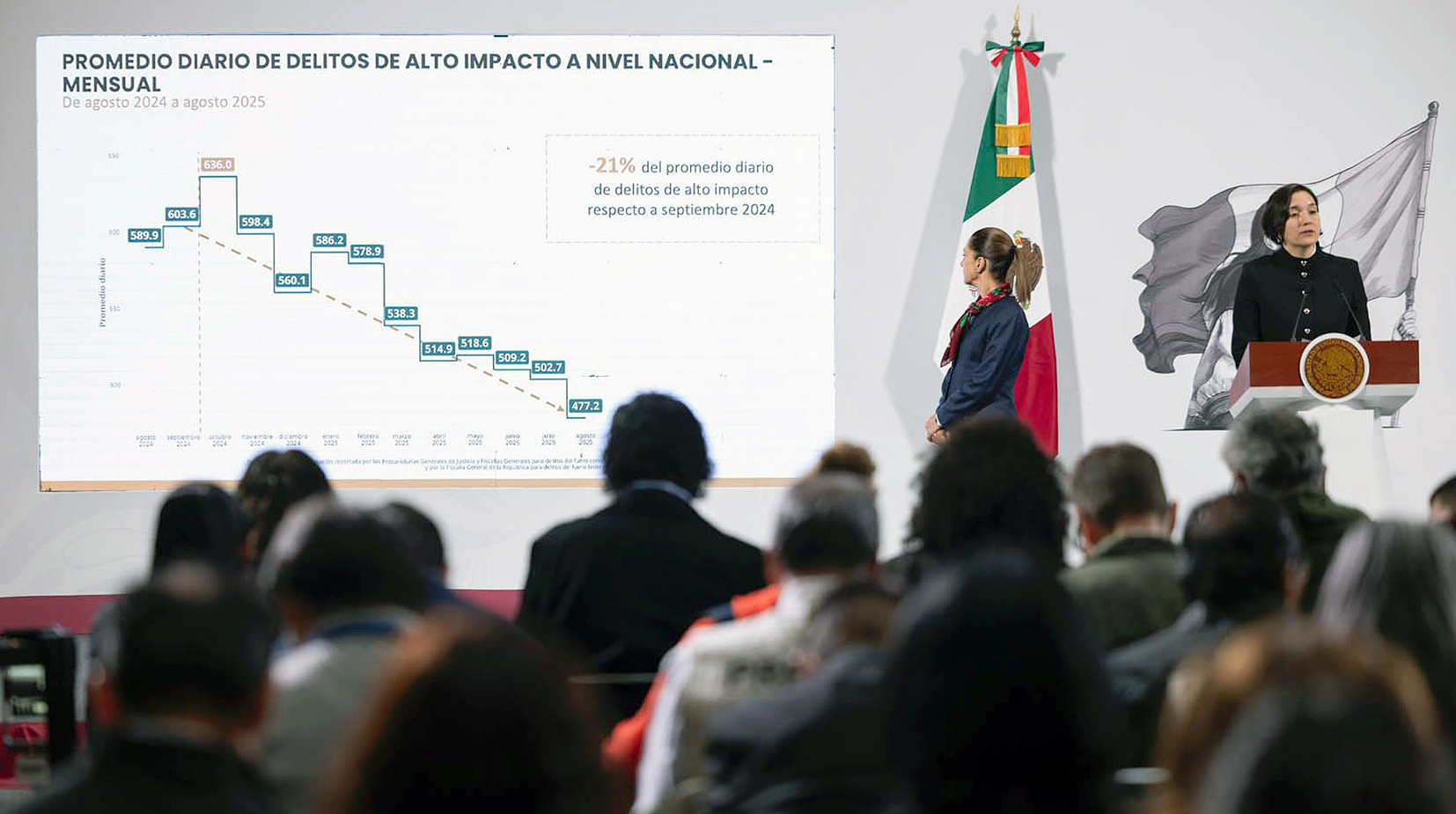 Figueroa Franco destacó que, de septiembre de 2024 a agosto de 2025, se ha registrado una disminución del 32 por ciento en el promedio diario de víctimas de homicidio doloso. “Implica que en agosto se registraron 27 homicidios menos que los registrados en septiembre del 2024”, precisó. Además, subrayó que agosto de este año fue el mes con menor número de homicidios dolosos desde 2015.