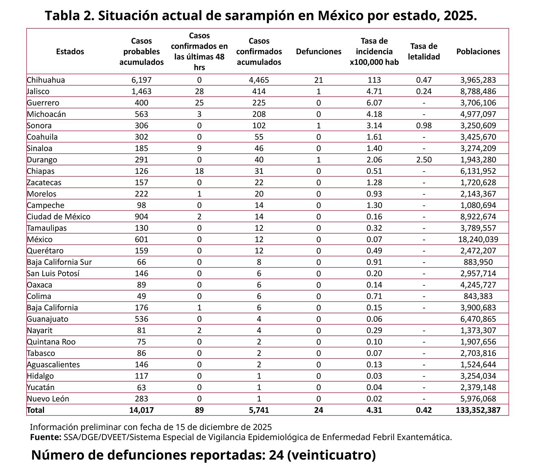 La Federación reportó que en México, en esta primera quincena de diciembre, hay 5 mil 741 casos acumulados, en las últimas 24 horas se reportaron 89 nuevos, 25 de estos en Guerrero.