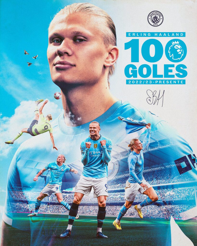 Antes incluso del descanso en Craven Cottage, Haaland logró alcanzar su gol 100 en 111 partidos ligueros con los Citizens.