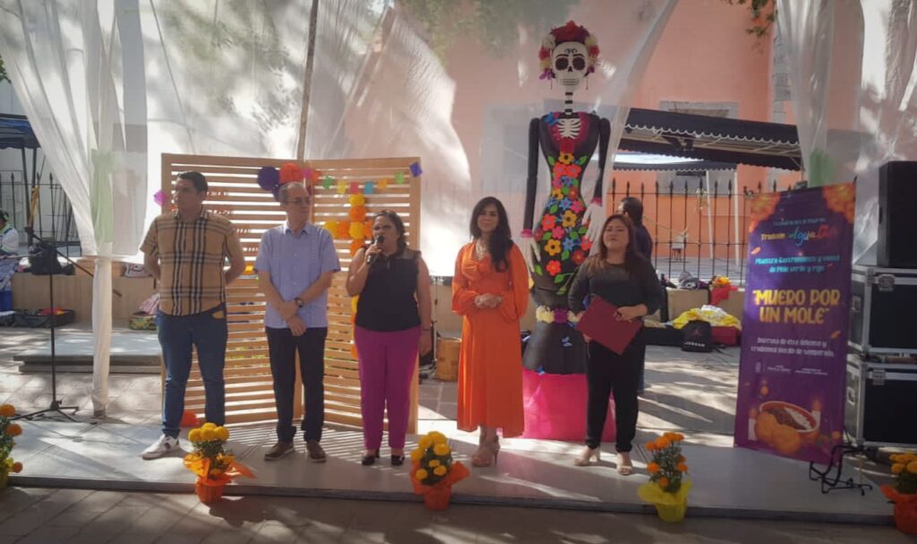 Iguala, Gro., octubre 29.- En el marco del Festival de «Día de Muerto» Tradición Inigualable, la síndica administradora Nayeli Salmerón Mora, inauguró la 2a Edición «Muero por un Mole», organizado y coordinado por la regidora de la Comisión de Educación, Celia Mireya Martínez Domínguez, con la finalidad de darle realce a la gastronomía y las tradiciones.