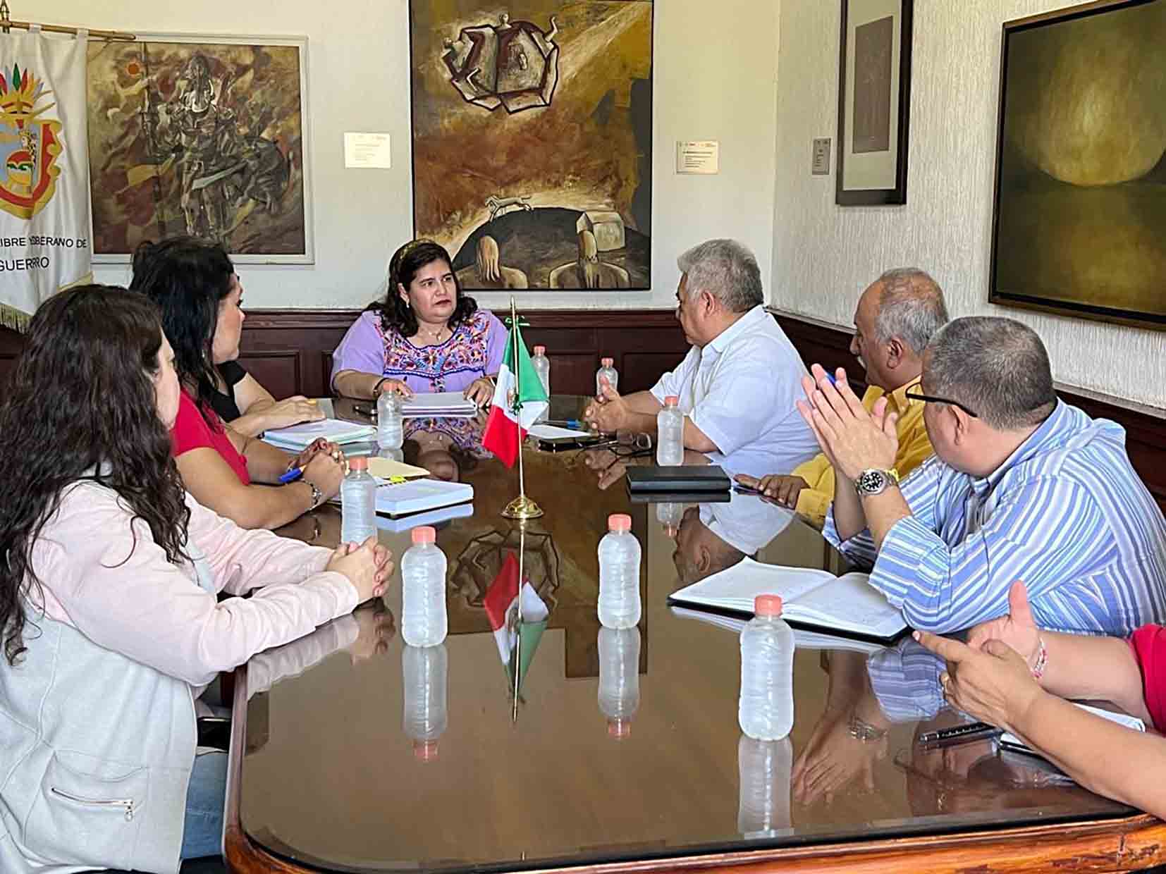 Chilpancingo, Gro., Con el propósito de coadyuvar e impulsar proyectos culturales en beneficio de los chilpancingueños, este martes la secretaria de Cultura del estado, Aída Melina Martínez Rebolledo, sostuvo una reunión de trabajo con el presidente municipal de Chilpancingo, Gustavo Alarcón Herrera, y sus respectivos equipos, encuentro realizado en las oficinas del Palacio de Cultura.