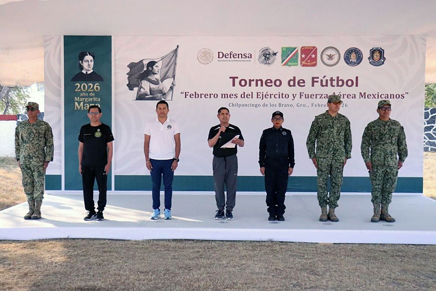 Chilpancingo, Gro., Como parte de las actividades conmemorativas del Día del Ejército Mexicano y de la campaña “Febrero, Mes del Ejército y Fuerza Aérea Mexicanos”, la Secretaría de la Defensa Nacional, a través de la comandancia correspondiente, llevó a cabo la inauguración de un Torneo de Futbol con la participación de instituciones de seguridad.