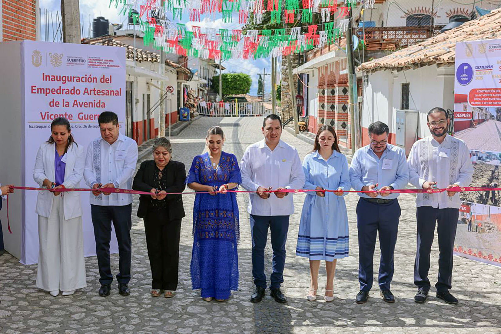 Ixcateopan, Gro., La gobernadora Evelyn Salgado Pineda inauguró la segunda etapa del empedrado artesanal con mármol de la avenida Vicente Guerrero, en este Pueblo Mágico, sumando un total de ocho obras con una inversión superior a 23 millones de pesos para impulsar el desarrollo turístico del municipio donde se encuentran los restos del último Huey Tlatoani Azteca, Cuauhtémoc.