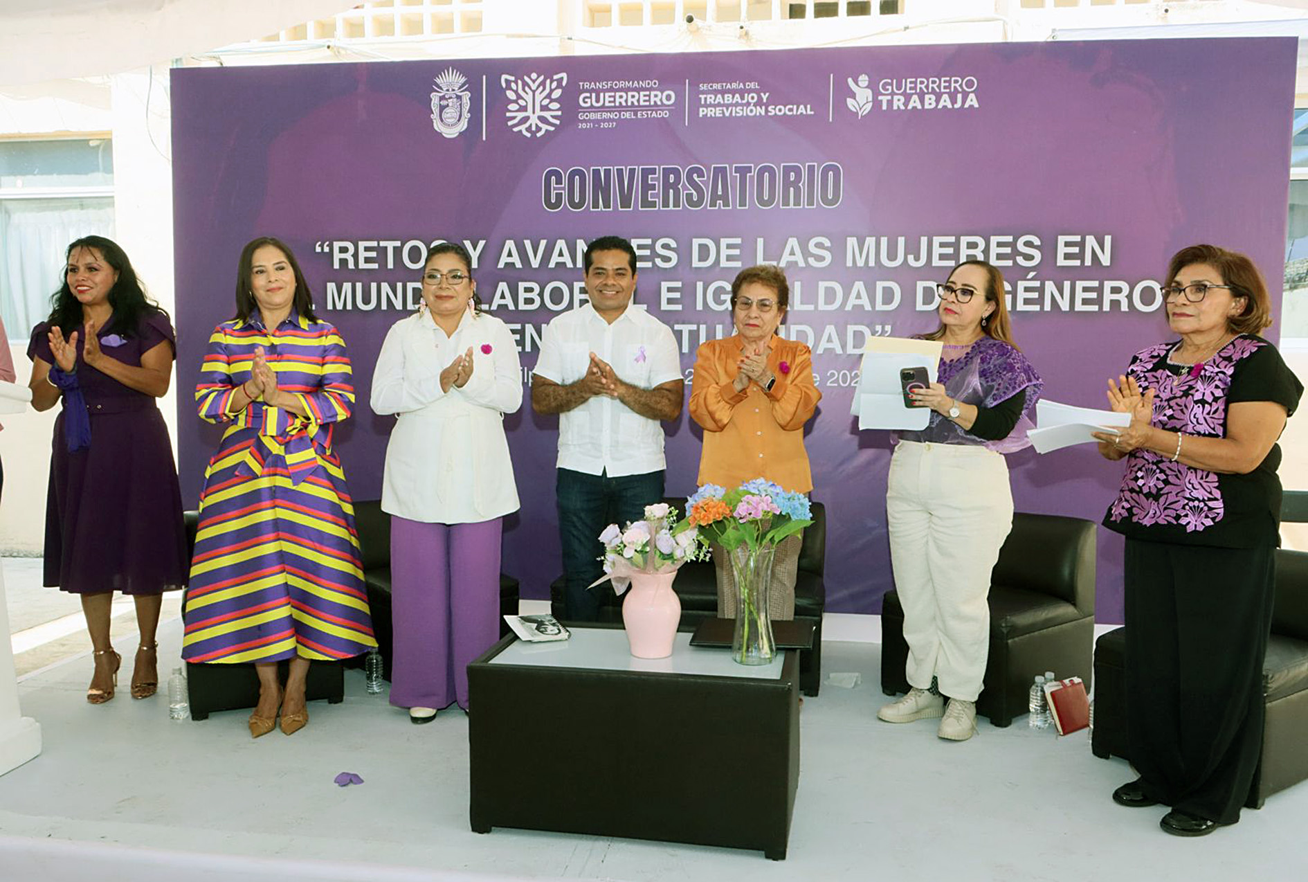 Al evento asistieron la diputada local Gladys Cortés Genchi; la subsecretaria de Empleo y Previsión Social, Marlene Gómez Camero; las presidentas de la Junta Local de Conciliación y Arbitraje y de la Junta Especial, Francisca Castro Romero y Tania Guadalupe Pacheco Duarte; la directora del Servicio Nacional de Empleo Guerrero (SNE Guerrero), Araceli Sánchez García; la directora del Trabajo y Seguimiento Laboral, Areli Bailón Vélez; así como integrantes de las Unidades de Género y No Discriminación de diversas dependencias estatales.
