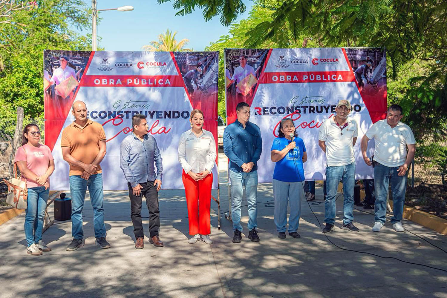 Cocula, Gro., Este viernes, el presidente municipal de Cocula, Raymond Román Alarcón, acompañado de la presidenta del DIF, Yolanda Ramirez Crespo; del regidor de Desarrollo Rural, Lázaro Fructuoso Cruz y de vecinos beneficiarios de la zona, llevó a cabo la inauguración de la primera etapa de pavimentación de la calle Juan Escutia, en el área conocida como La Tierra Colorada, a la altura del Banco del Bienestar y las oficinas de Sagarpa.