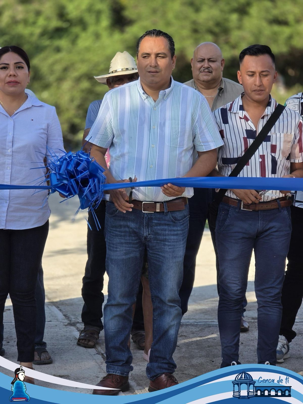Acompañado del comisario C. Antonio Mendoza Castro y de vecinos de la localidad, el presidente municipal Julio Galarza Castro realizó el corte de listón de esta importante obra.