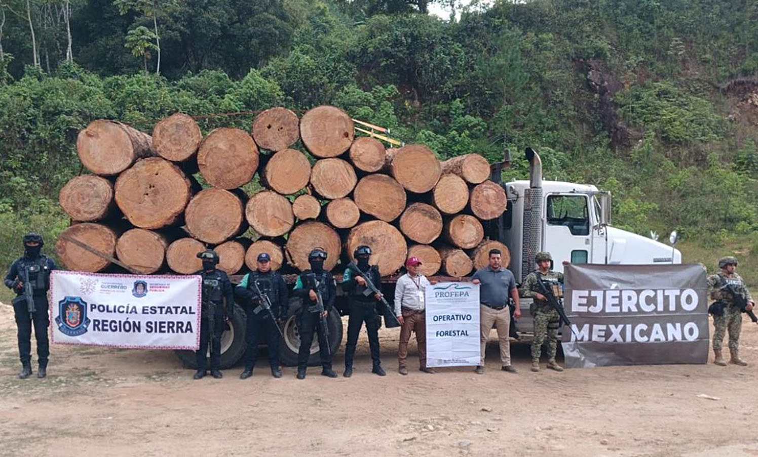 Acapulco, Gro., Como parte de un operativo forestal contra la tala clandestina y la deforestación, elementos de la Policía Estatal y del Ejército Mexicano en apoyo a la Procuraduría Federal de Protección al Ambiente (Profepa), aseguraron material forestal en el municipio de Atoyac de Álvarez.