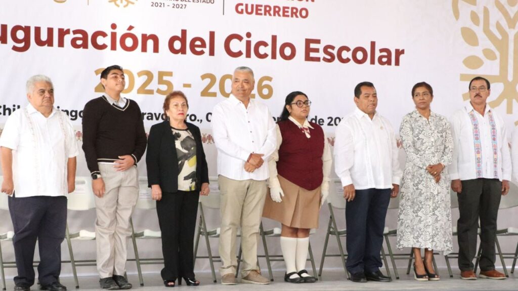 Chilpancingo, Gro., 1 de septiembre de 2025.- En representación de la gobernadora, Evelyn Salgado Pineda, el secretario de Educación en Guerrero, Ricardo Castillo Peña dio el banderazo de inicio al ciclo escolar 2025-2026, con el retorno de más de un millón 100 mil estudiantes de todos los niveles educativos.