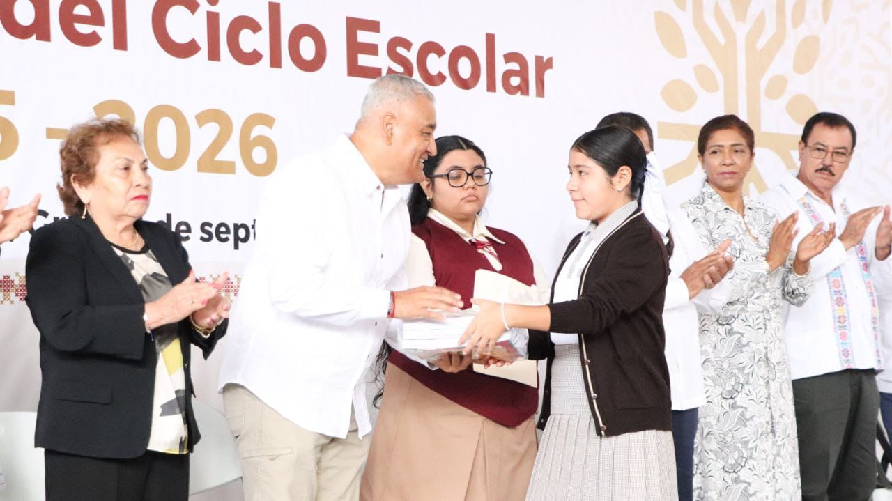 Durante el evento se llevó a cabo la entrega simbólica de libros de texto gratuitos para alumnos de educación básica, de los cuales se tienen el 100 por ciento para ser entregados en las diversas regiones del estado, además entregaron material de limpieza.