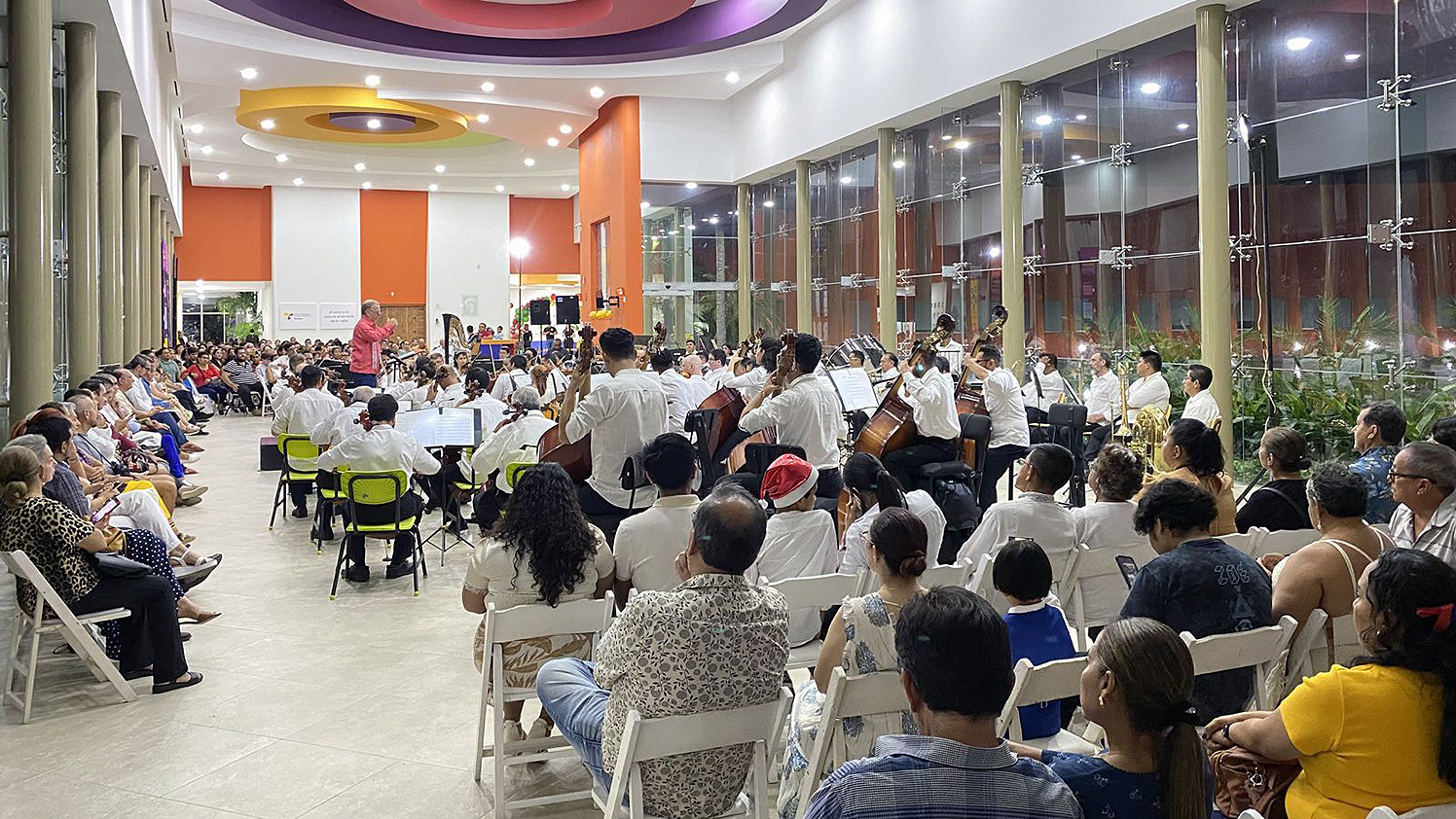 Para esta primera presentación, el programa incluyó en el repertorio las tradicionales canciones “Blanca Navidad”, “Noche de Paz” y un Popurrí de Villancicos que fueron coreadas por los más de 400 asistentes quienes además, dirigidos por el Maestro Bartholomeus Henri Van de Velde, bailaron divertidos, con la “Danza de los Mirlitones” de la famosa obra “El Cascanueces” de P. I. Tchaikovsky, mientras se encendía el árbol navideño.