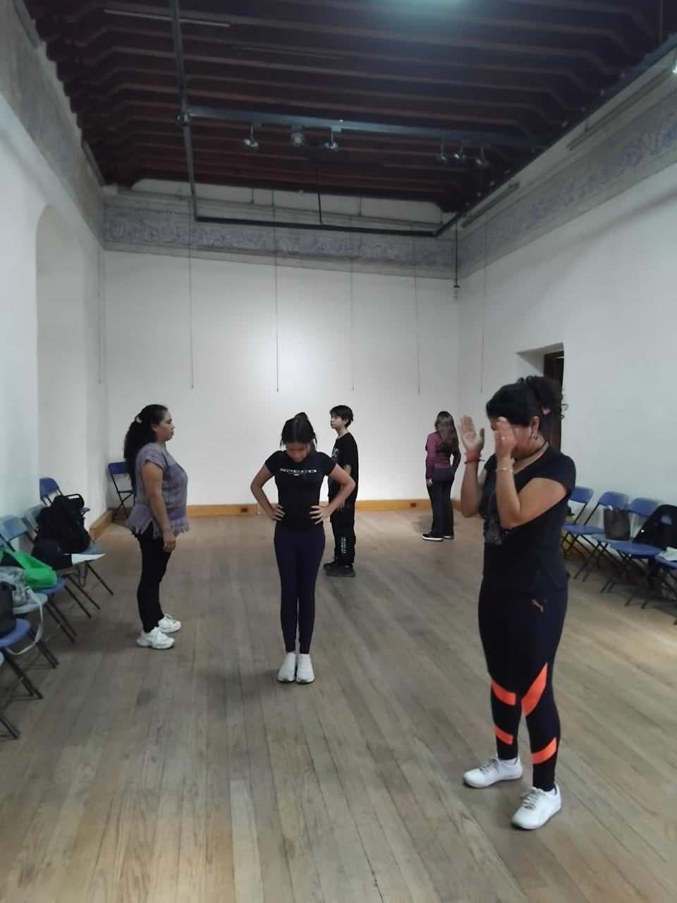 Durante la primera sesión, jóvenes y adultos participaron en ejercicios de relajación e integración mediante dinámicas lúdicas, así como prácticas de interpretación teatral y exploración de distintos niveles de la voz, orientadas al reconocimiento y uso consciente del cuerpo como herramienta expresiva.