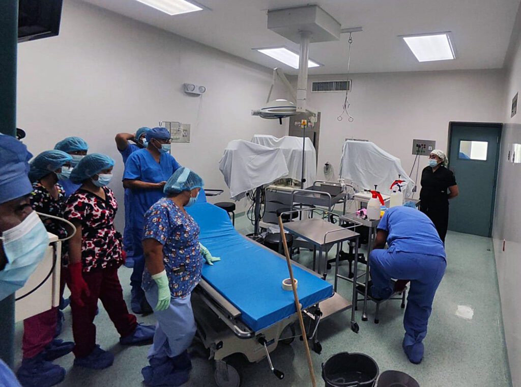 Informó que como parte de las labores de limpieza y desinfección de las instalaciones se realizó la limpieza exhaustiva de 4 quirófanos, área de recuperación quirúrgica, limpieza y desinfección de 9 consultorios, 3 gabinetes de estudios especiales de apoyo diagnóstico, la central de equipos y esterilización, así como la sala de espera.