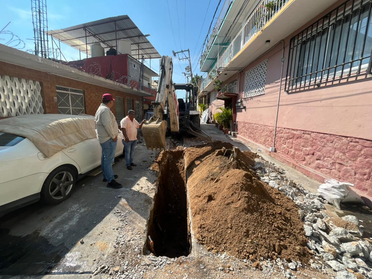 Como parte de estas acciones, se sustituyó una tubería sanitaria severamente dañada en la Colonia Hogar Moderno. Se colocó un tramo de 6 metros de tubería Novafort de 10 pulgadas, lo que mejoró el funcionamiento del sistema para las familias de la Calle Río Atoyac.