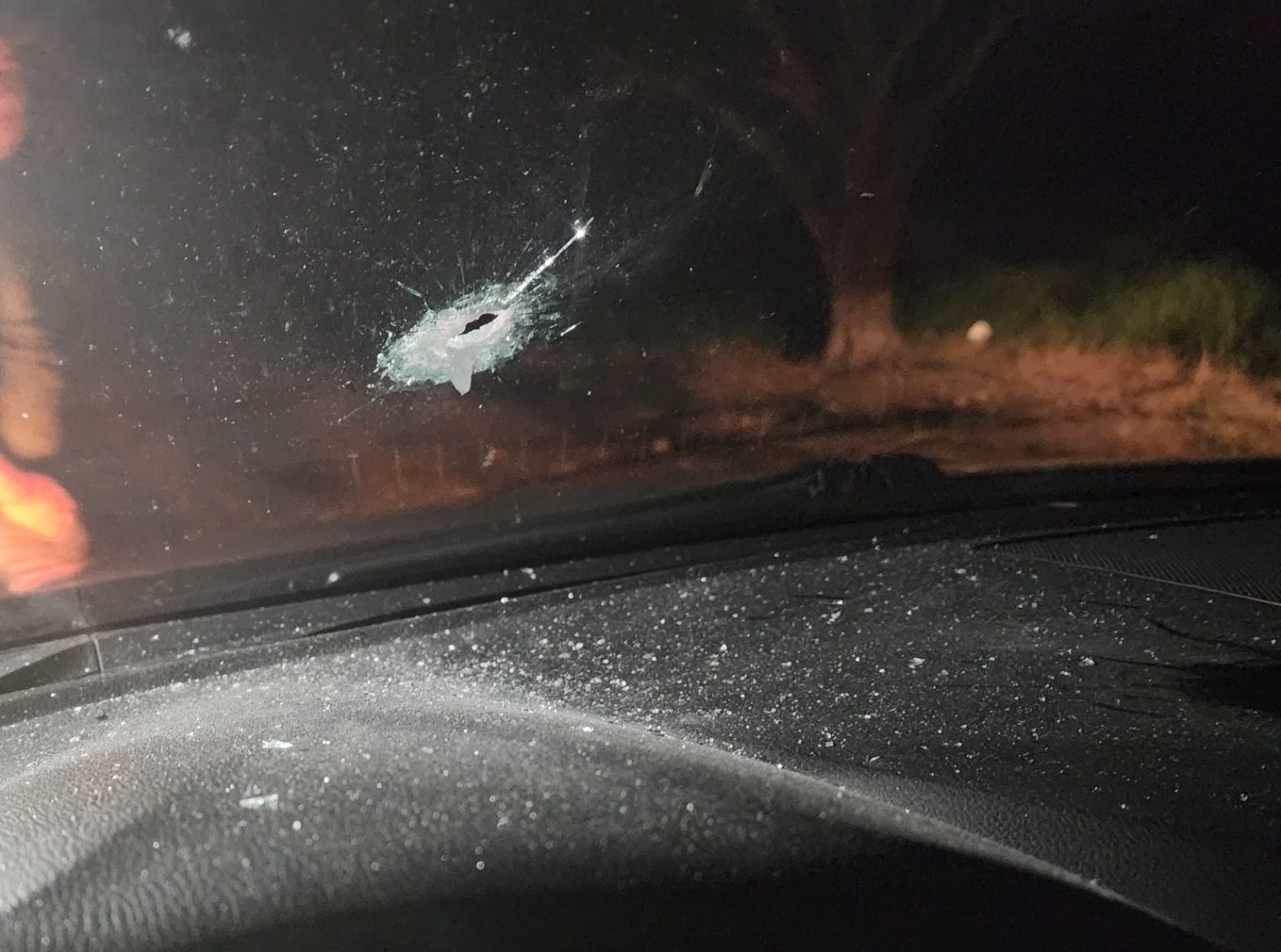 Al hacer la denuncia presentó fotografías del auto Mazda, en cuyo neumático trasero presenta un impacto de bala y en el parabrisas.