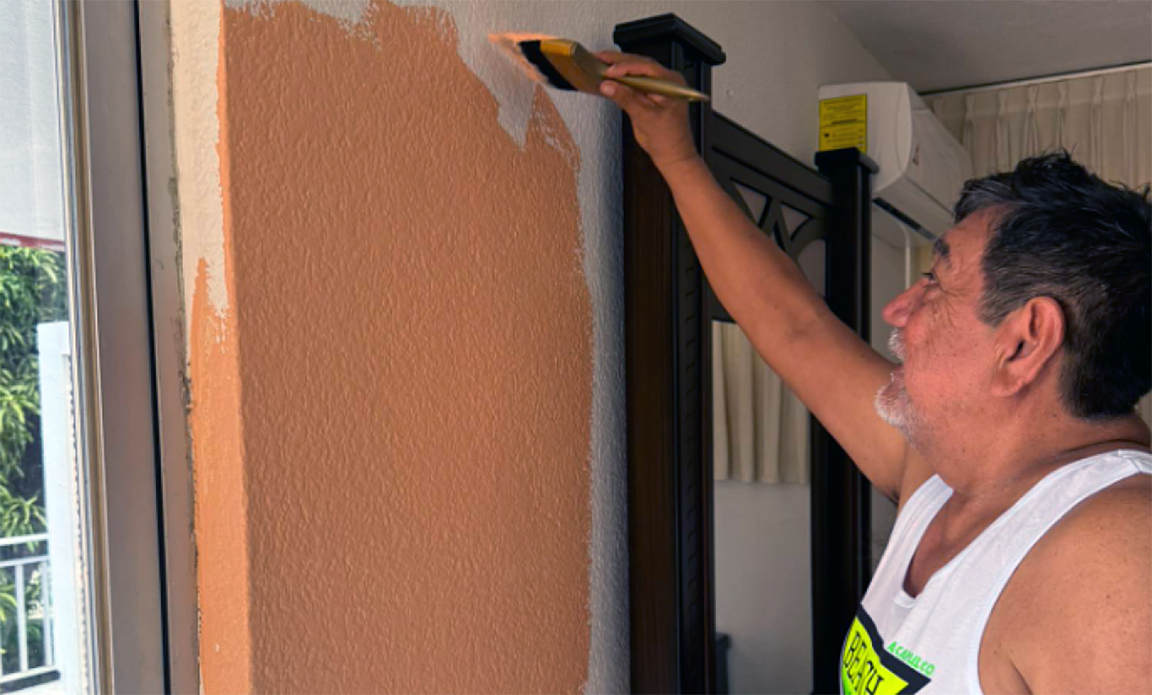 En una publicación en su cuenta de Facebook, Salgado Macedonio publicó una fotografía en la que aparece pintando una pared de su recámara de color melón, acompañada del siguiente texto: