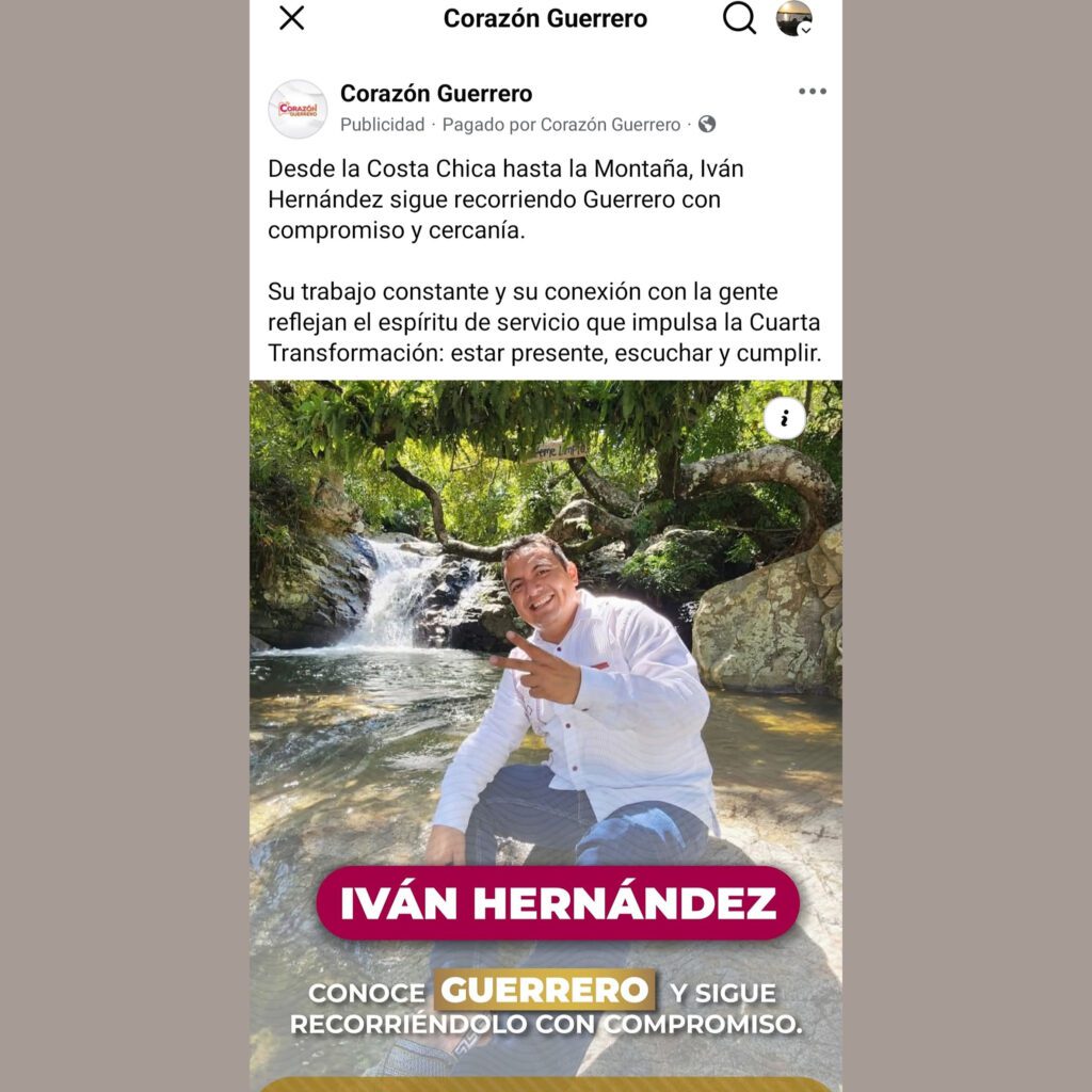 La promoción se realiza a través de la red social Facebook, bajo la etiqueta de “publicidad” pagada por Corazón Guerrero. La campaña, que parece tener miras a un puesto de elección popular en 2027, incluye fotografías y mensajes que buscan reforzar la imagen de Hernández Díaz frente al electorado.