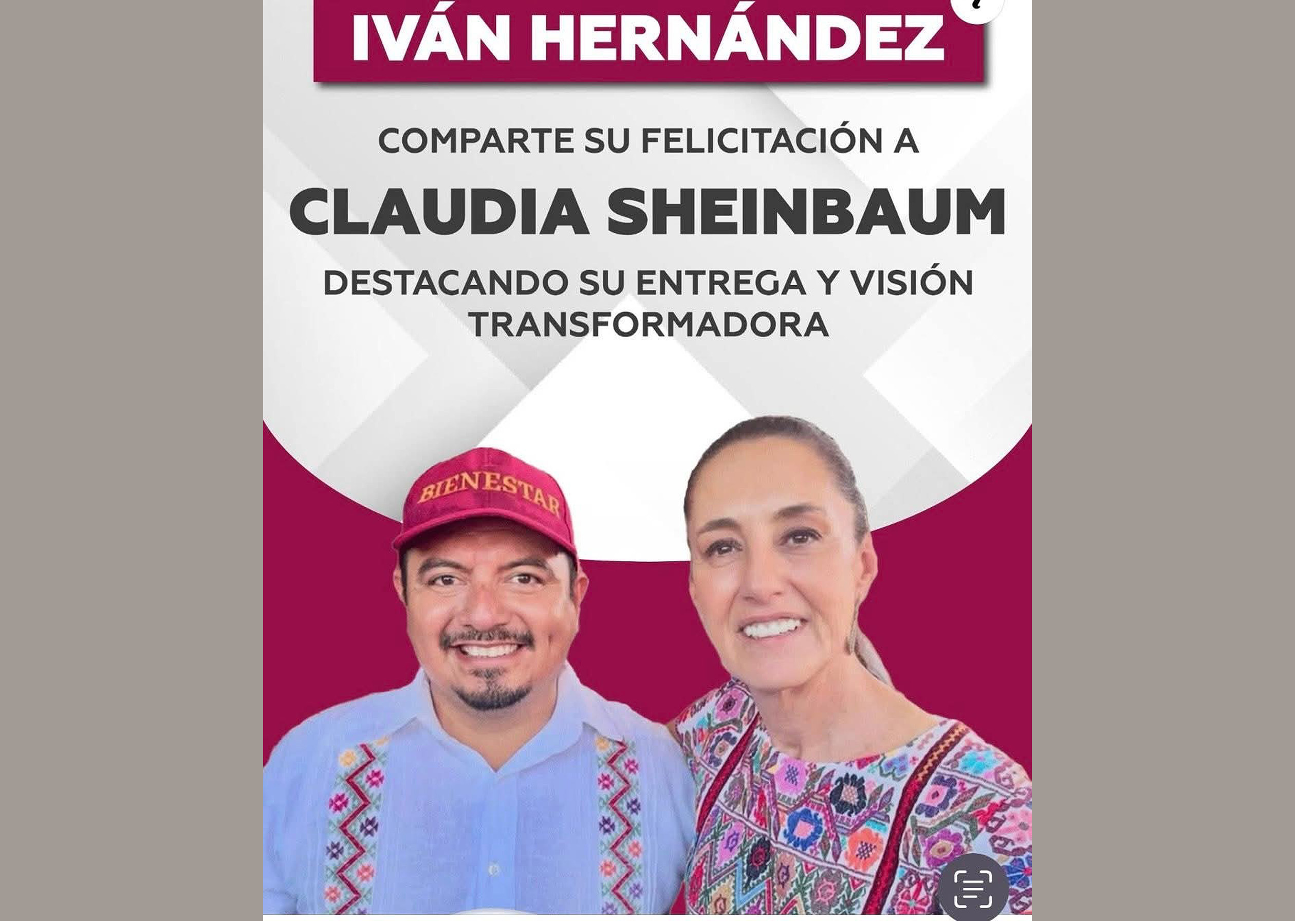 En una de estas publicaciones se observa al delegado con Claudia Sheinbaum Pardo, acompañada del mensaje: “Iván Hernández comparte su felicitación a Claudia Sheinbaum destacando su entrega y visión transformadora”.