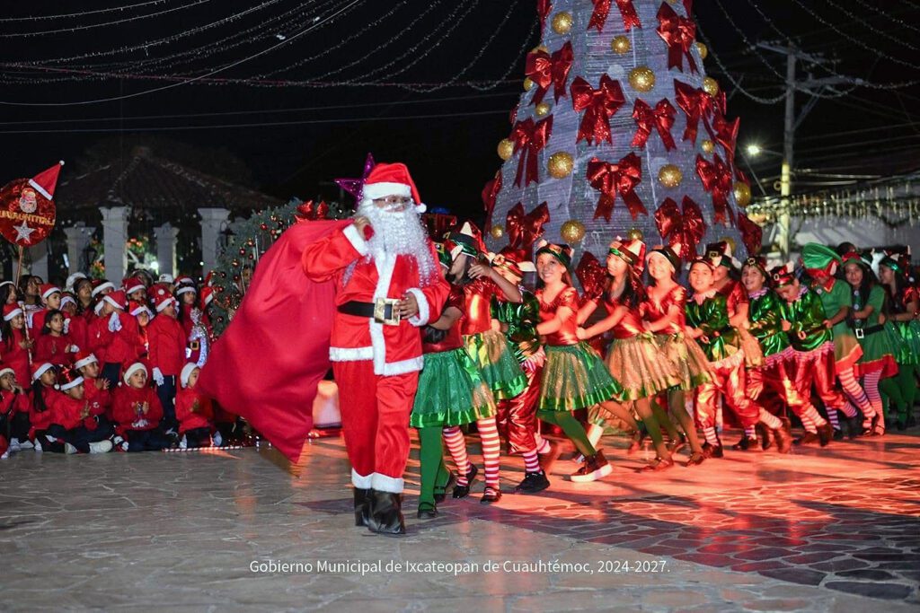 Ixcateopan, Gro., En un ambiente lleno de color, música y alegría, y ante la presencia de cientos de familias ixcateopenses, las autoridades municipales, encabezadas por el alcalde Juan Carlos Rodríguez Barrera, realizaron el Encendido del Árbol de Navidad en la Explanada “Eulalia Guzmán”, con una decoración especial y un programa alusivo a las fiestas decembrinas.