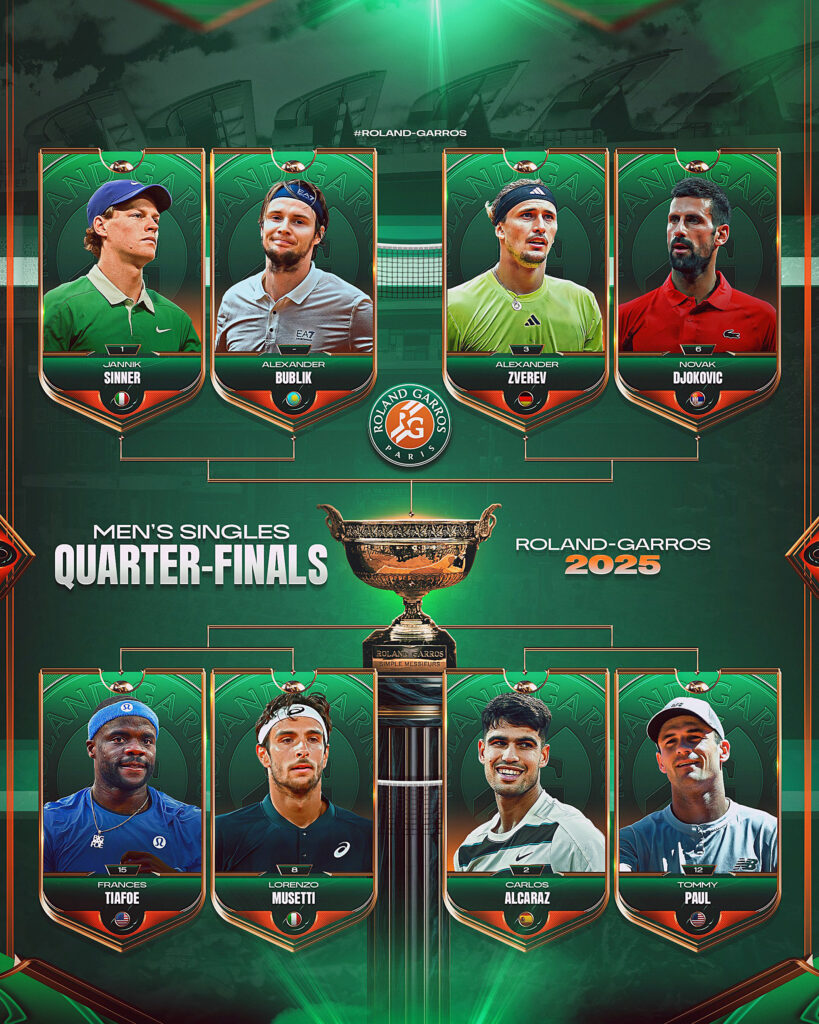 Sinner no falla pues a la cita con los demás favoritos a conquistar la Copa de los Mosqueteros, el vigente campeón Carlos Alcaraz, clasificado el domingo, el serbio Novak Djokovic y el alemán Alexander Zverev, que validaron su boleto este lunes.