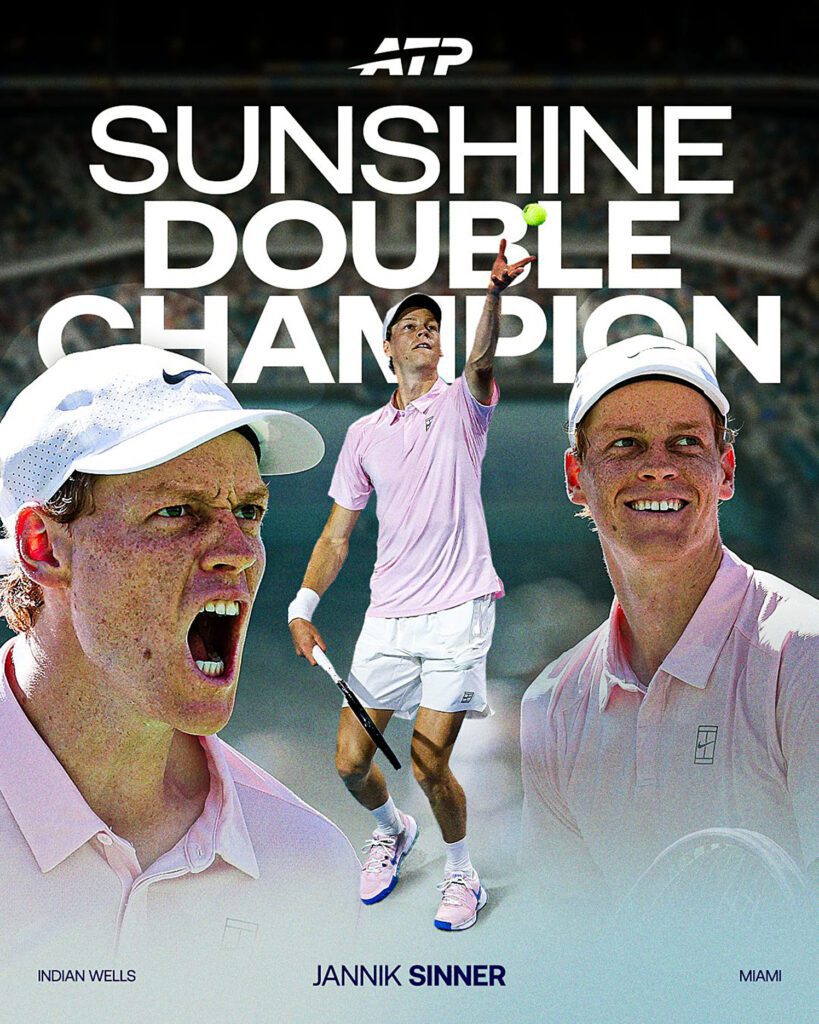 Sinner es el primer jugador en ganar consecutivamente los Masters 1000 de Indian Wells y Miami, ambos en Estados Unidos, desde que lo hizo Roger Federer en 2017.
